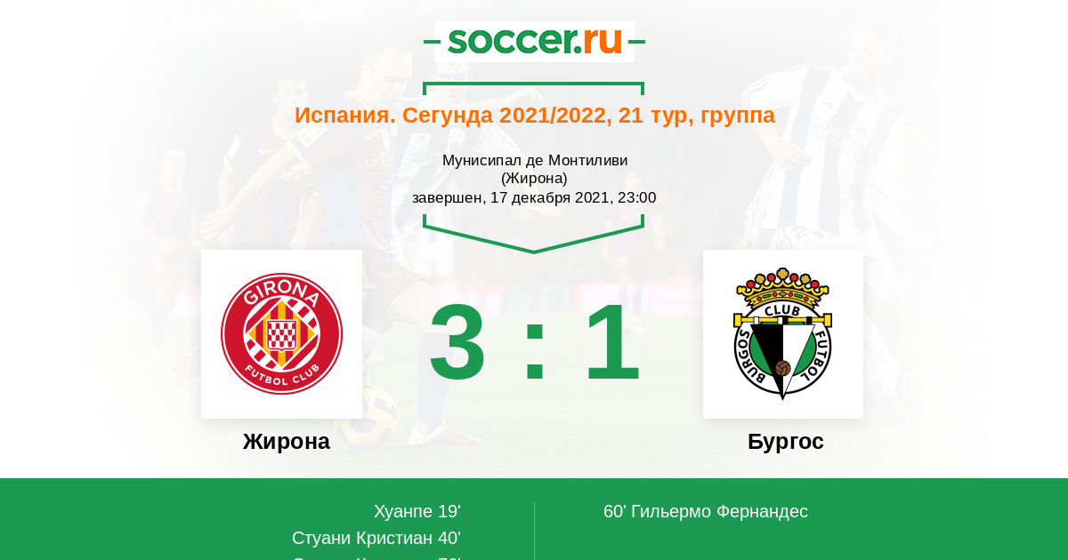 Протокол матча Жирона против Бургос