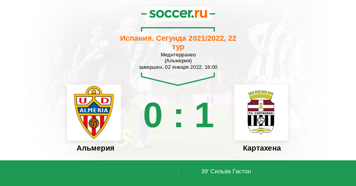 Протокол матча Альмерия против Картахена