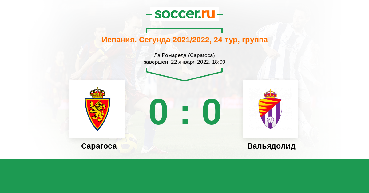 Протокол матча Сарагоса против Вальядолид