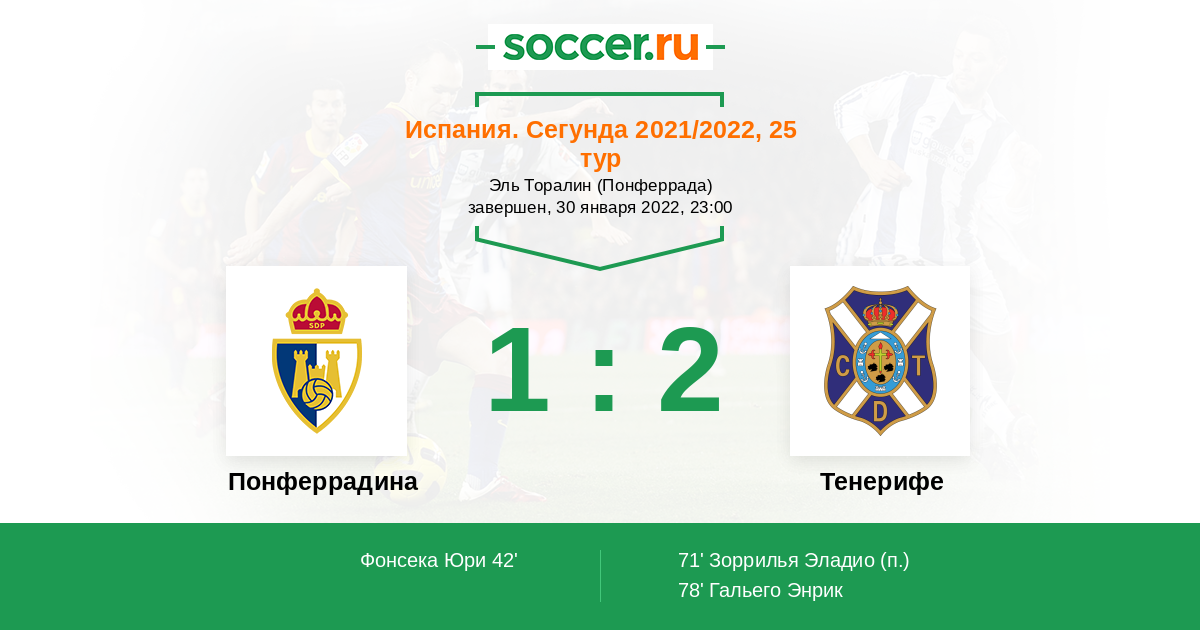 Протокол матча Понферрадина против Тенерифе