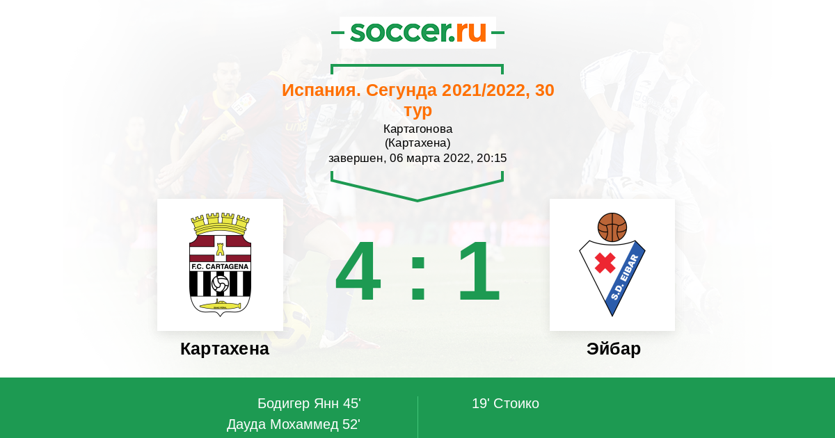Протокол матча Картахена против Эйбар