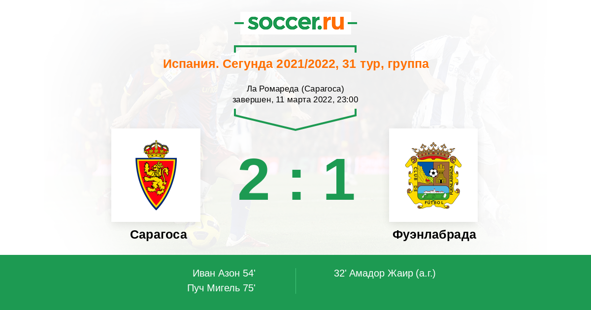 Протокол матча Сарагоса против Фуэнлабрада