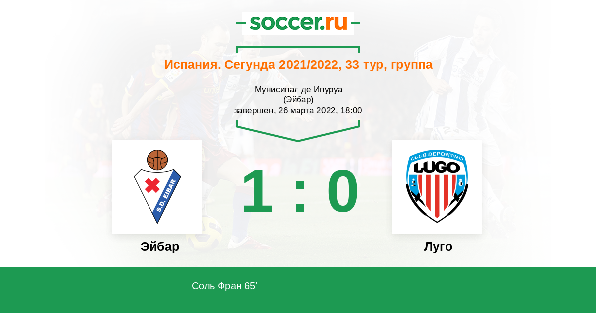 Протокол матча Эйбар против Луго