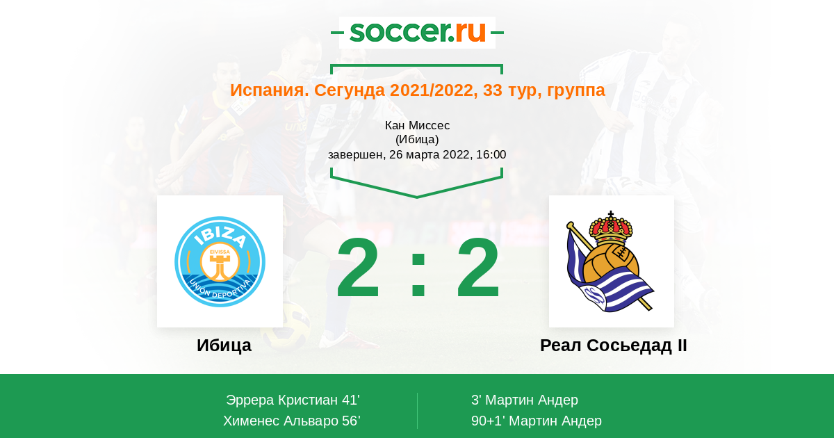Протокол матча Ибица против Реал Сосьедад II