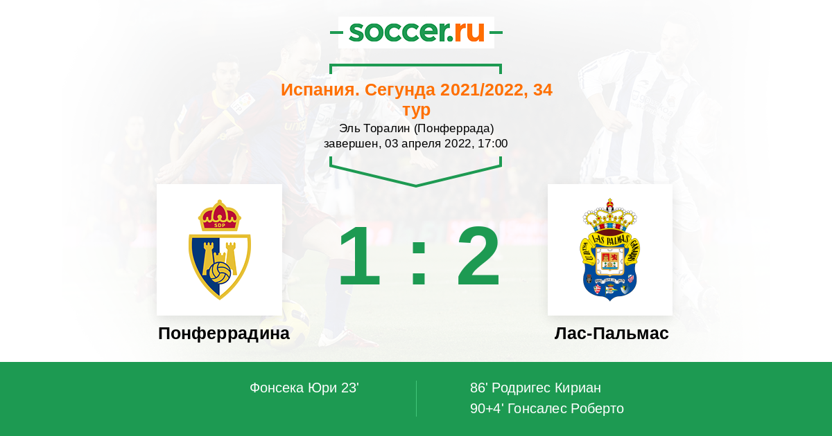 Протокол матча Понферрадина против Лас-Пальмас