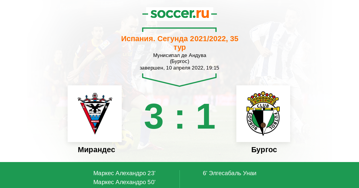 Протокол матча Мирандес против Бургос