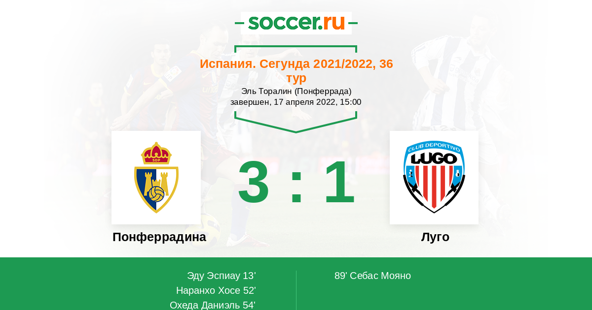 Протокол матча Понферрадина против Луго