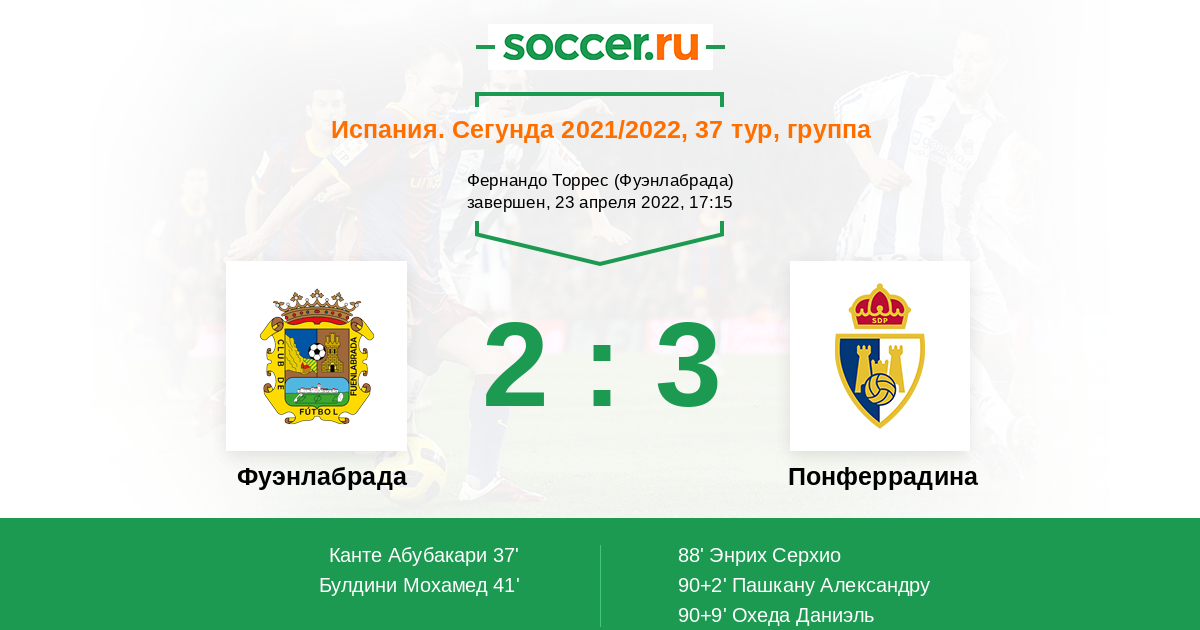 Гол90+9' (2:3) Охеда Даниэль (7) (Энрих Серхио (9))