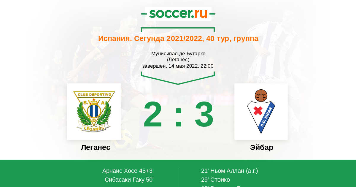 Протокол матча Леганес против Эйбар