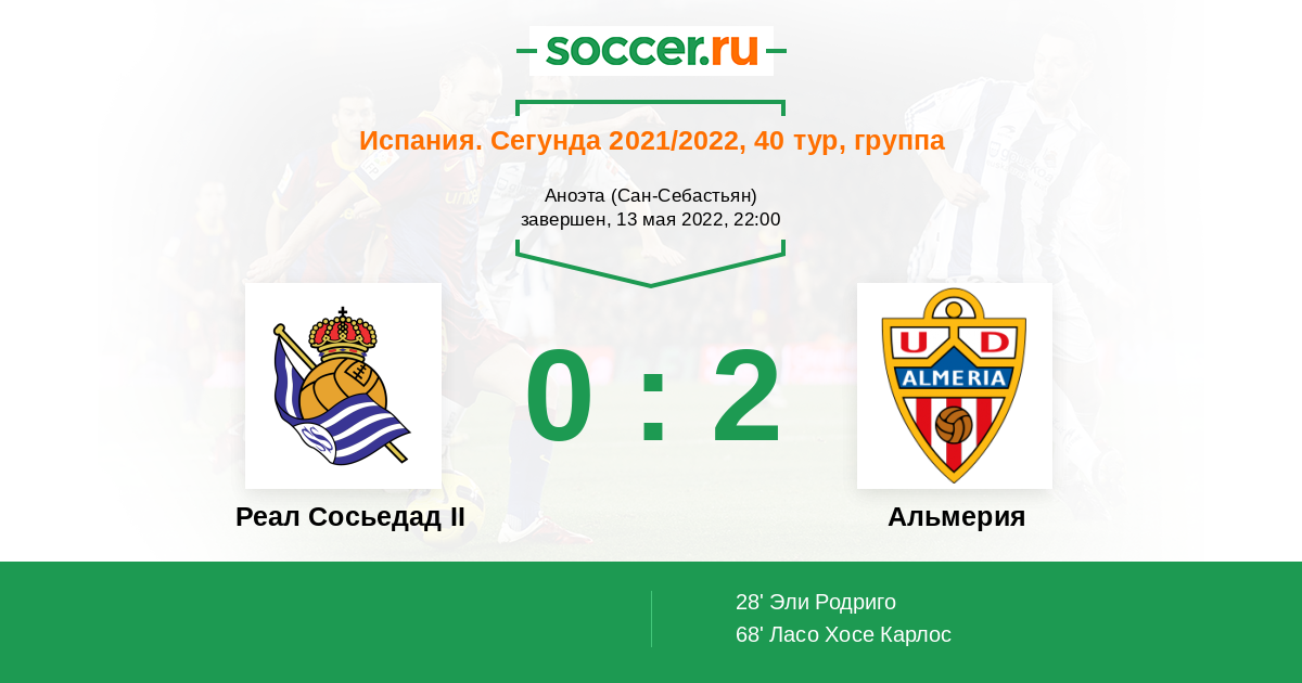Совсем высоки ставки у обоих соперников в сегодняшнем противостоянии, где вряд ли кто станет отсиживаться в обороне, Особенно это касается Реал Сосьедада, которого и вовсе устраивает только победный итог. Так что дуэль на встречных курсах нам здесь фактически обеспечена, где я еще надеюсь узреть, как минимум, 2 забитых гола в любую сторону. В завершении отмечу, что личка под вывеской первого круга между сан себастьянцами и альмерийцами окончилась с результативным счетом 1:3.