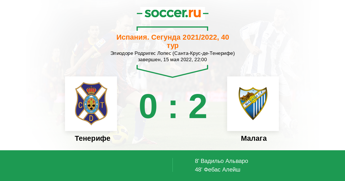 Протокол матча Тенерифе против Малага