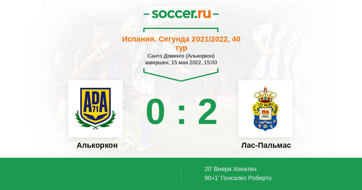 Протокол матча Алькоркон против Лас-Пальмас