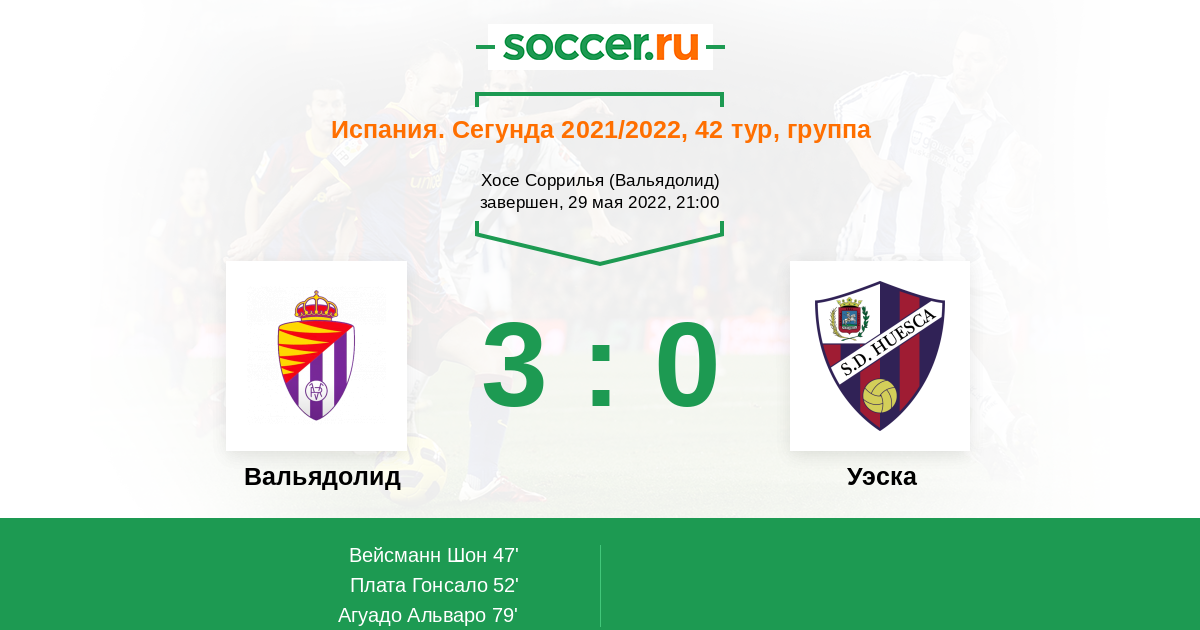 Протокол матча Вальядолид против Уэска