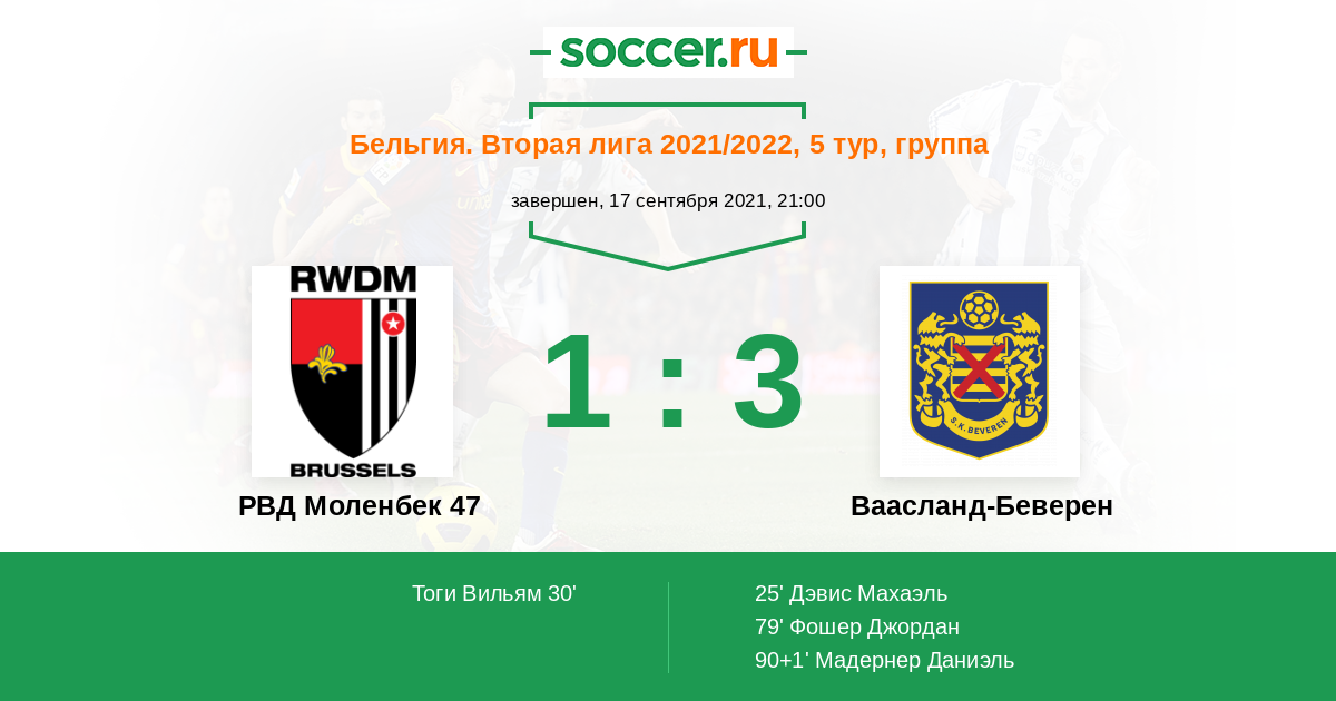 Протокол матча РВД Моленбек 47 против Ваасланд-Беверен