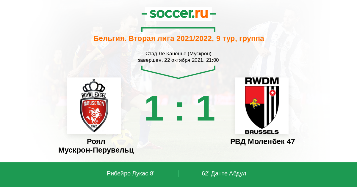 Протокол матча Роял Мускрон-Перувельц против РВД Моленбек 47