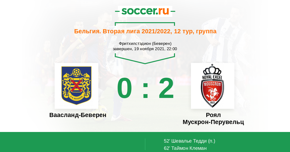 Протокол матча Ваасланд-Беверен против Роял Мускрон-Перувельц