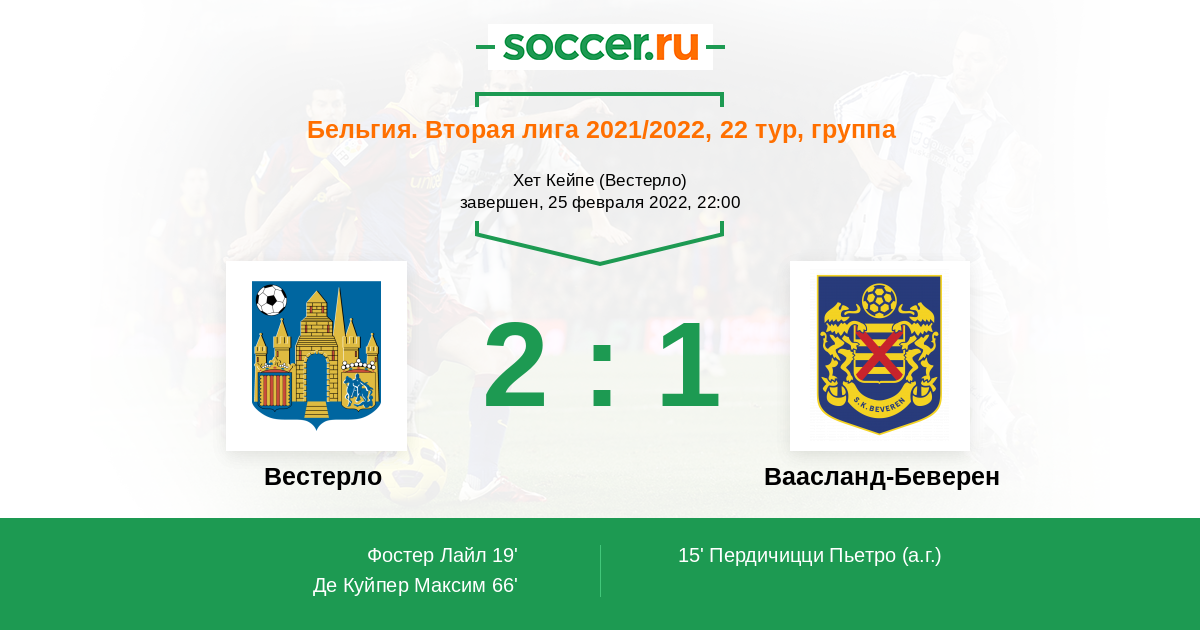 Протокол матча Вестерло против Ваасланд-Беверен