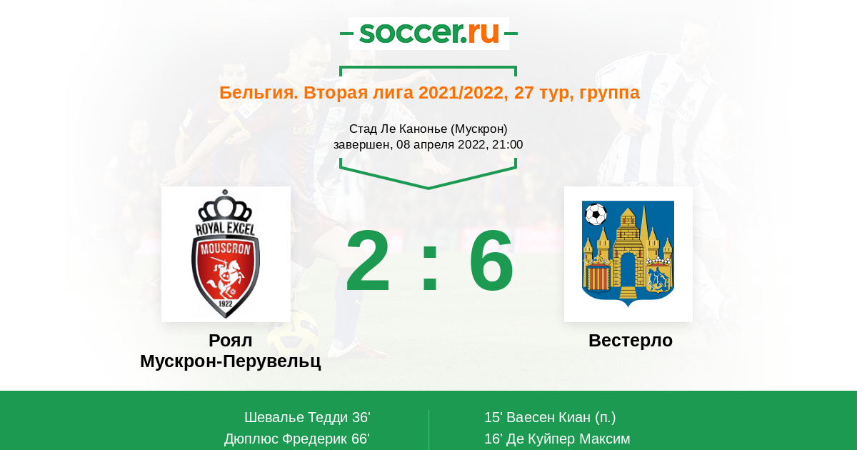 Протокол матча Роял Мускрон-Перувельц против Вестерло