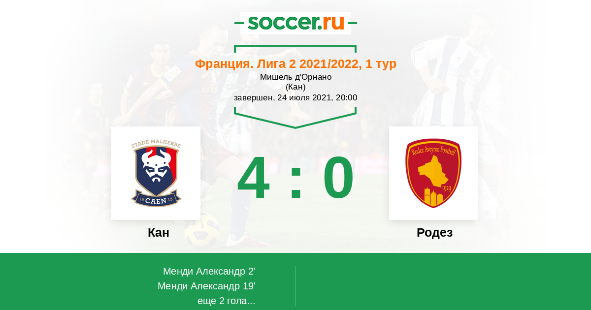 Протокол матча Кан против Родез