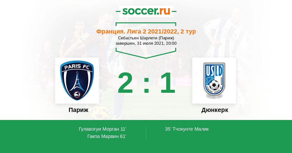 Протокол матча Париж против Дюнкерк