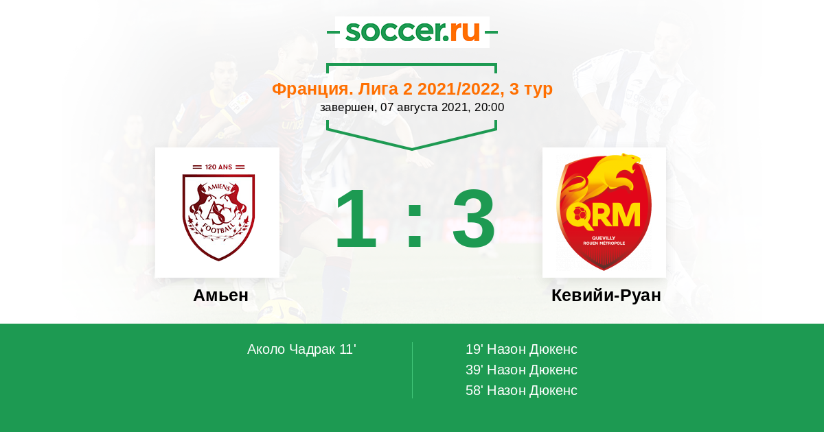 Протокол матча Амьен против Кевийи-Руан