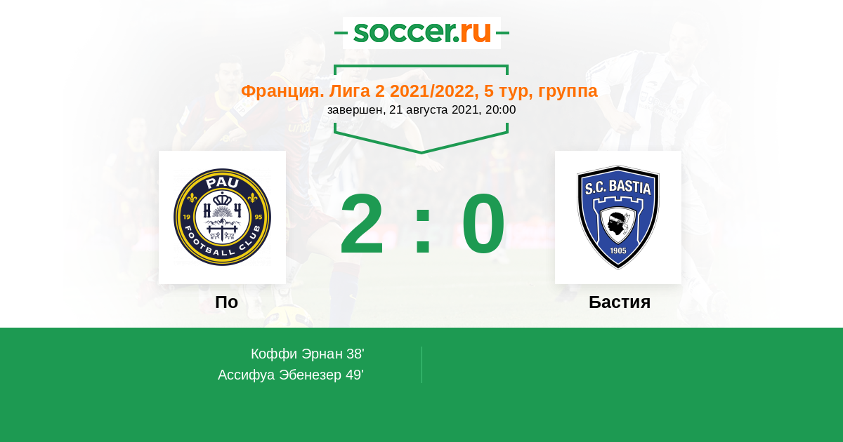 Протокол матча По против Бастия