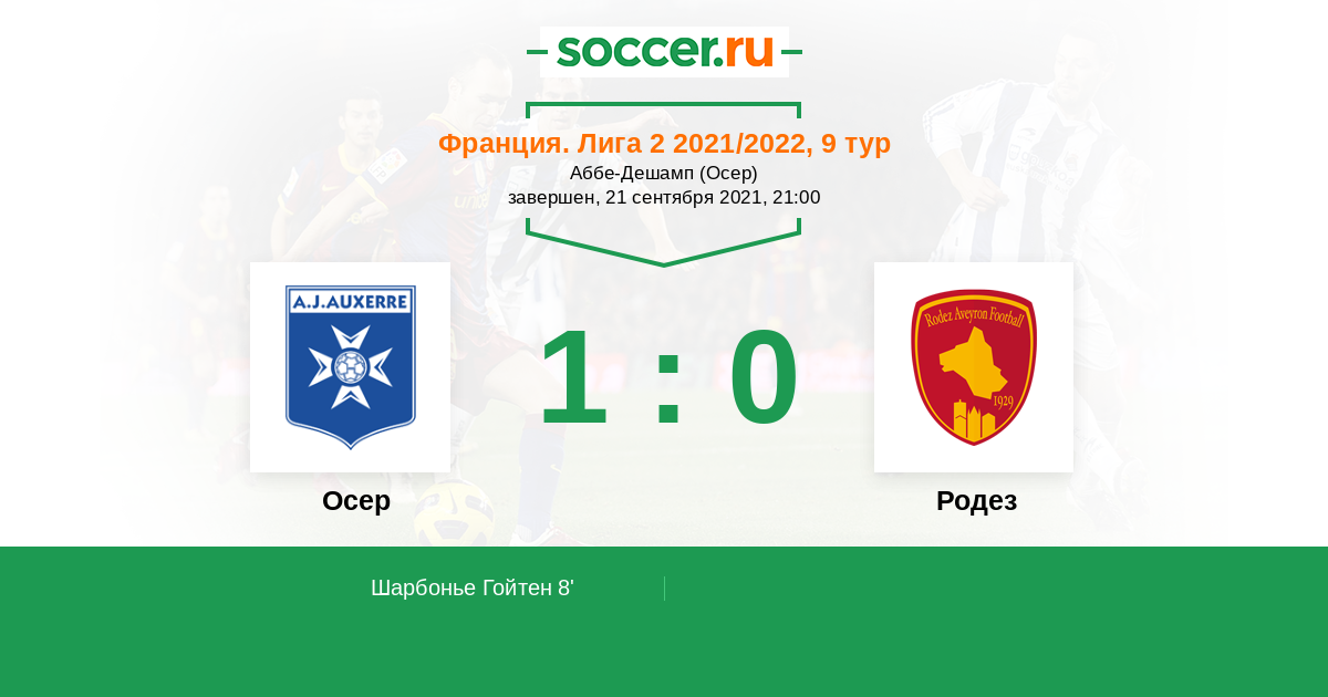 Протокол матча Осер против Родез