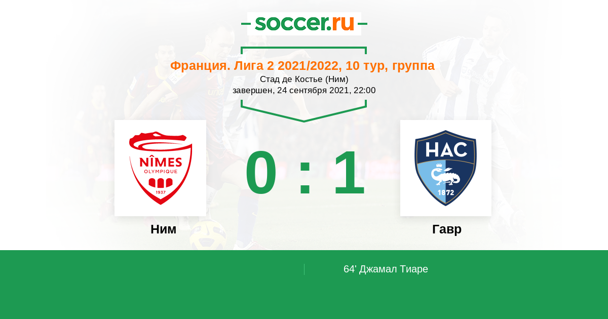 Протокол матча Ним против Гавр