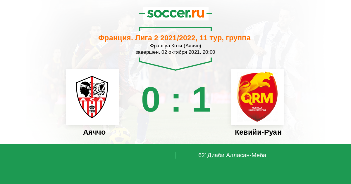 Протокол матча Аяччо против Кевийи-Руан