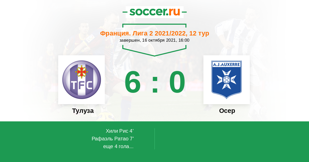 Протокол матча Тулуза против Осер