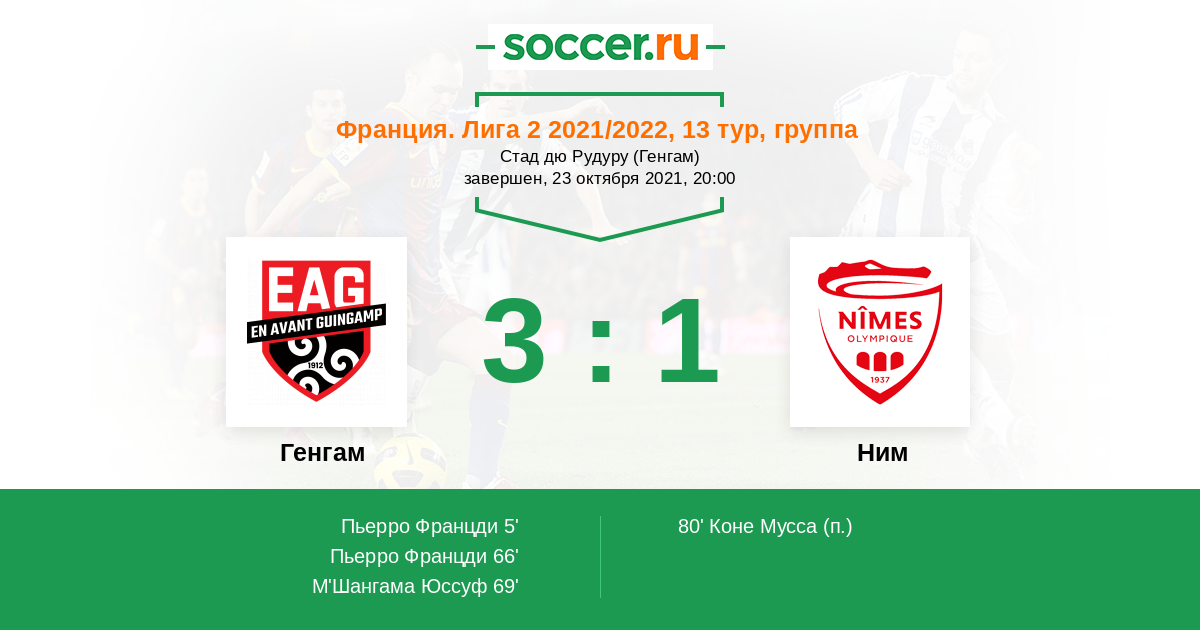 66' (2:0) Пьерро Францди (9) (М'Шангама Юссуф (10))