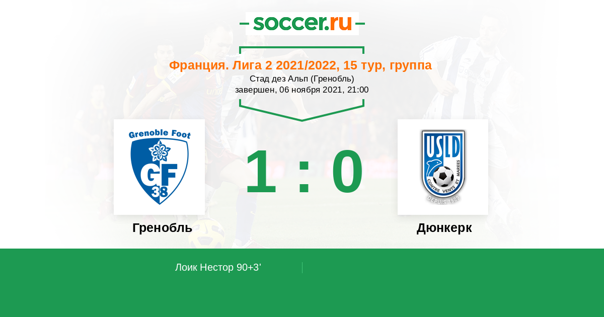 Протокол матча Гренобль против Дюнкерк