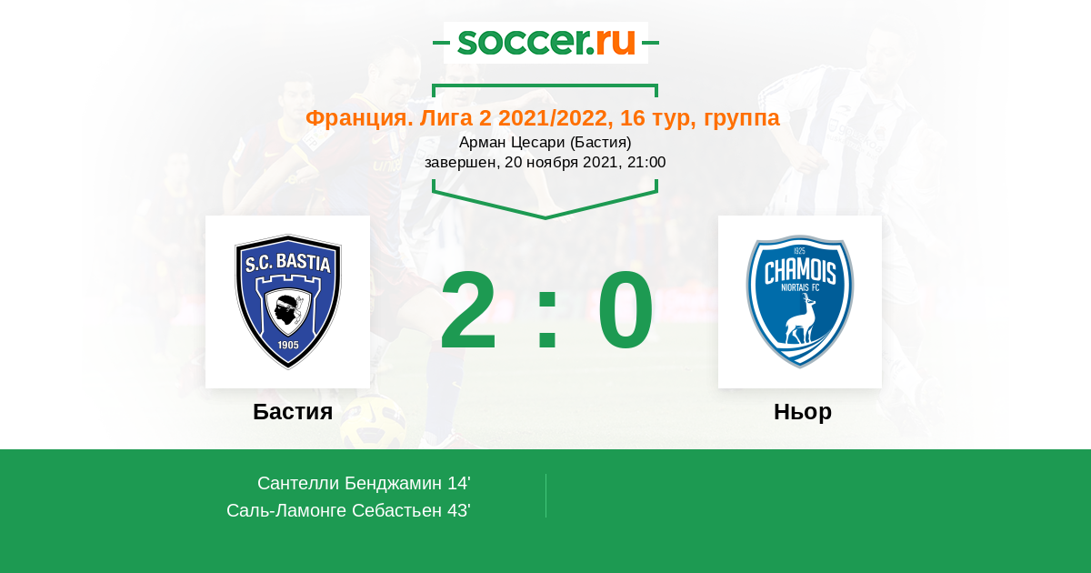 43' (2:0) Саль-Ламонге Себастьен (10) (Сантелли Бенджамин (9))