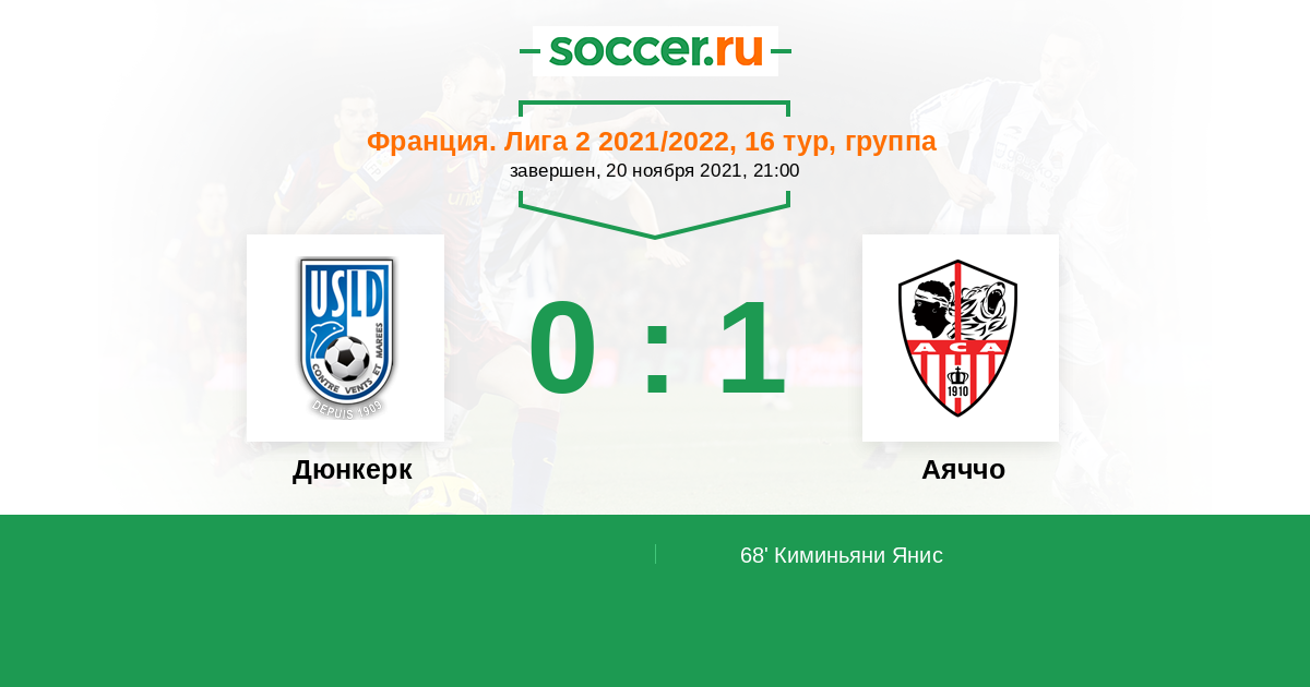 Протокол матча Дюнкерк против Аяччо