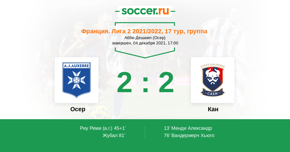 Протокол матча Осер против Кан