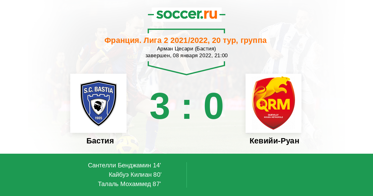Протокол матча Бастия против Кевийи-Руан