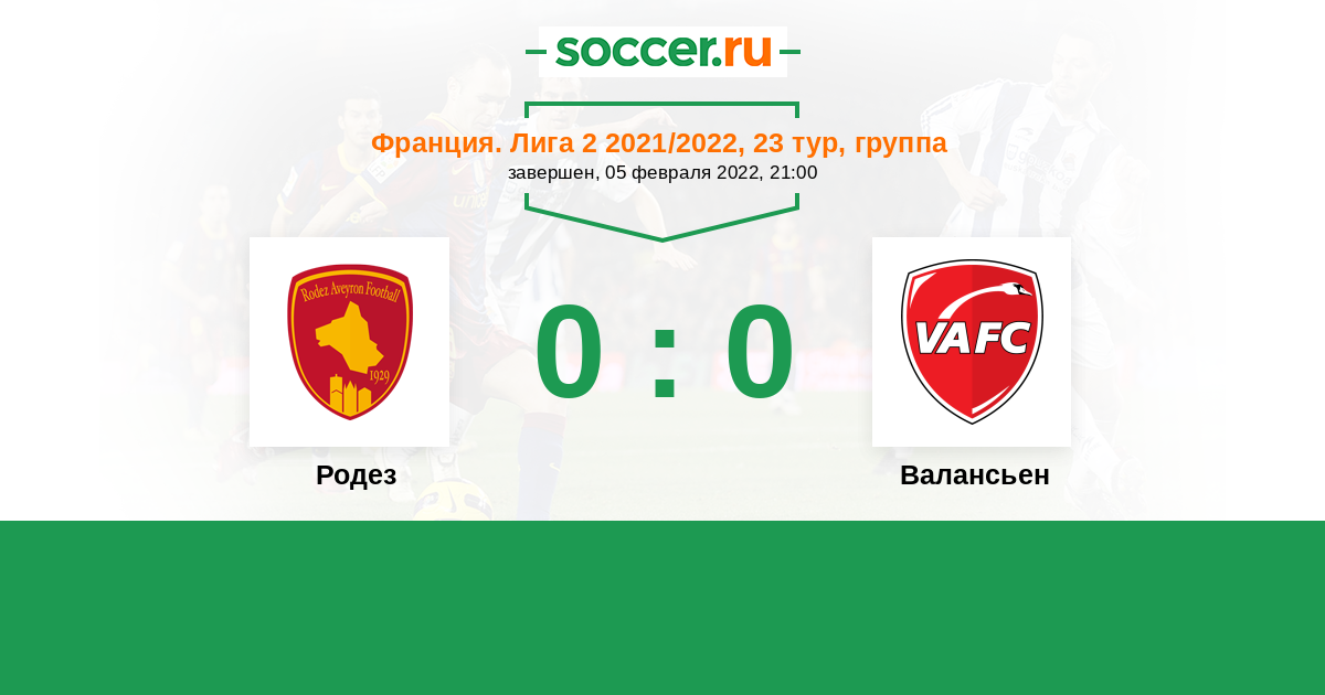 Протокол матча Родез против Валансьен