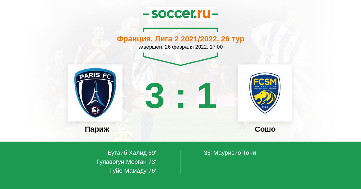 73' (2:1) Гулавогуи Морган (21) (Ханин Флоран (29))