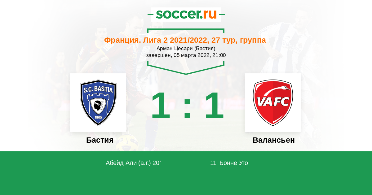 Протокол матча Бастия против Валансьен