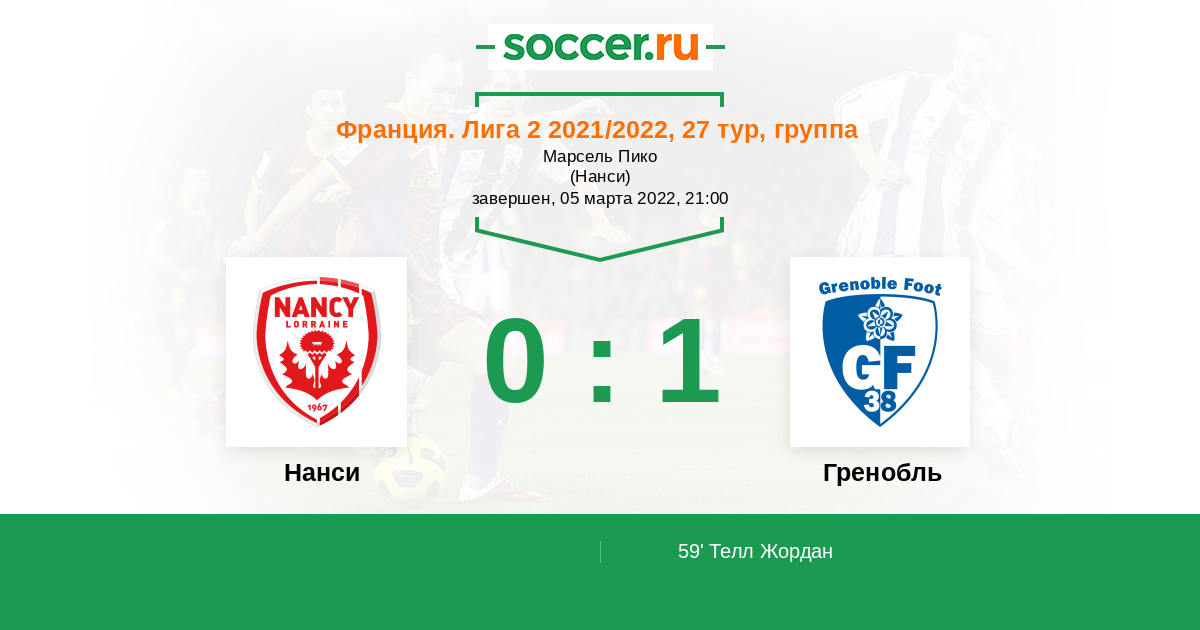 Протокол матча Нанси против Гренобль