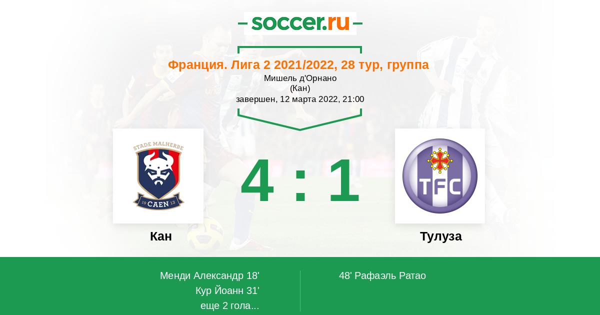 Протокол матча Кан против Тулуза