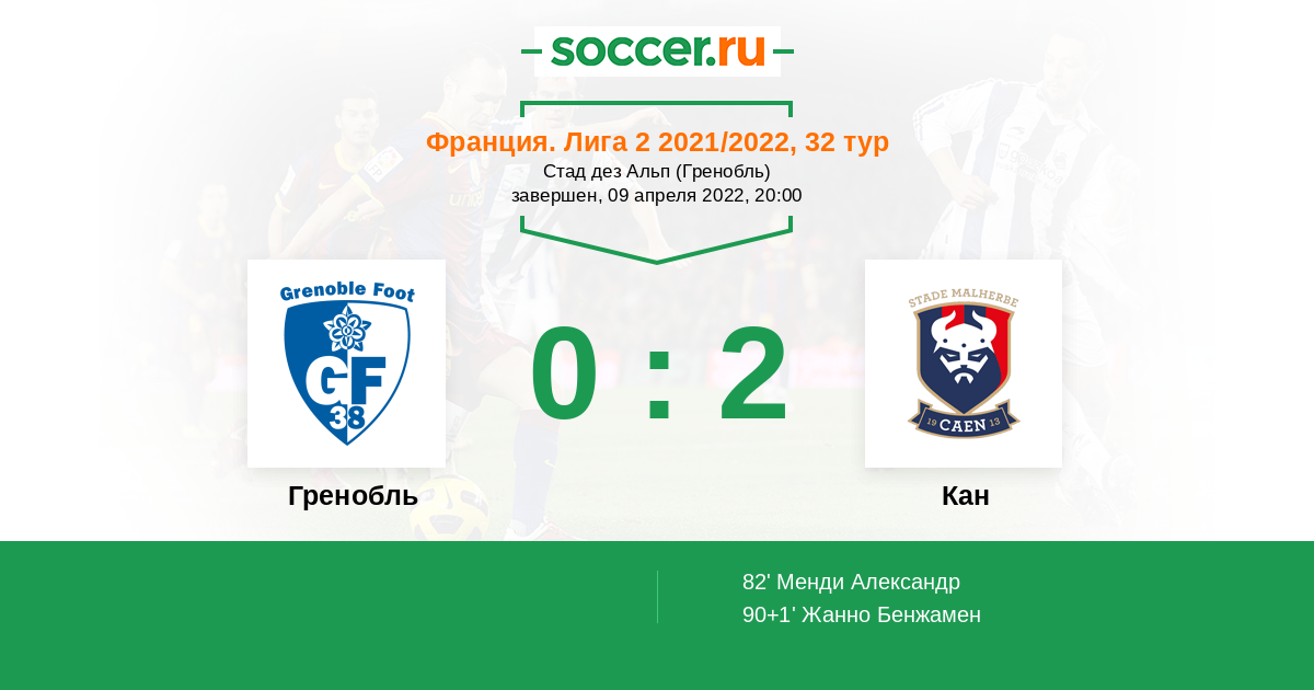 Протокол матча Гренобль против Кан