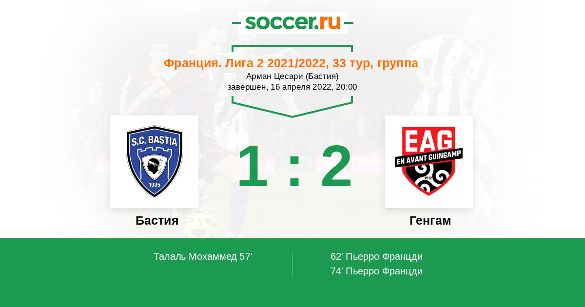 Протокол матча Бастия против Генгам