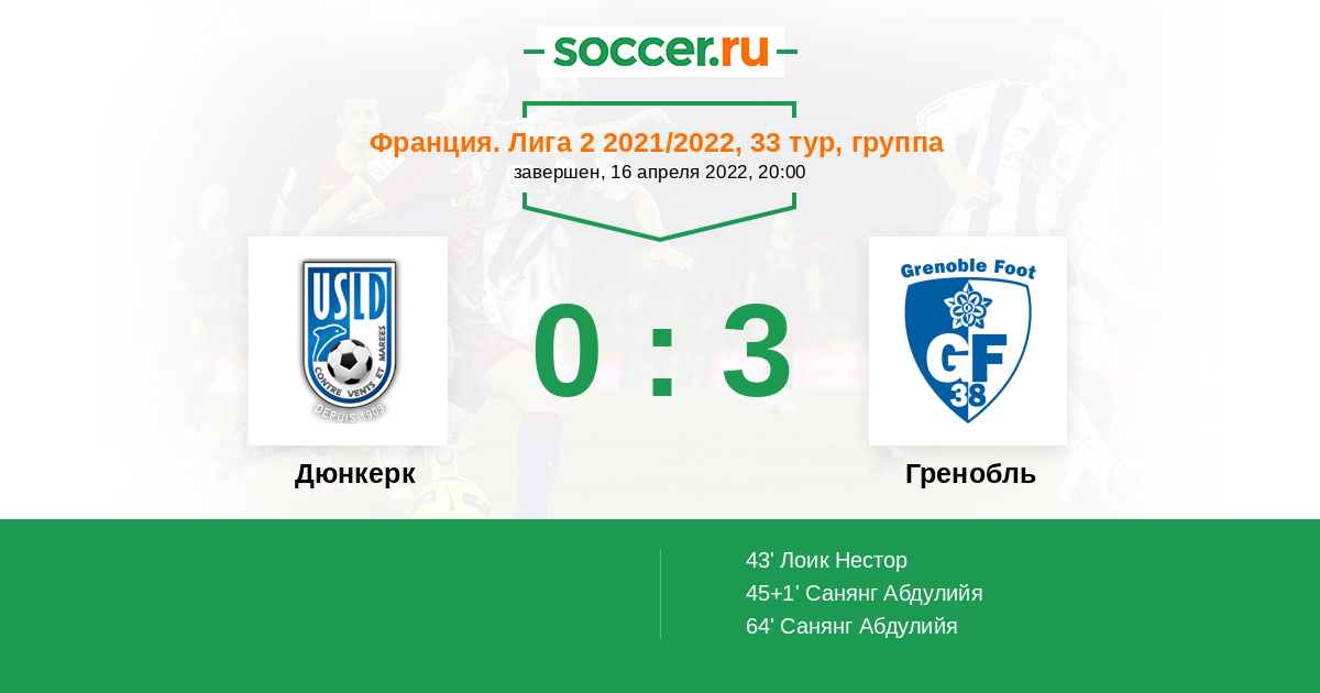 Протокол матча Дюнкерк против Гренобль