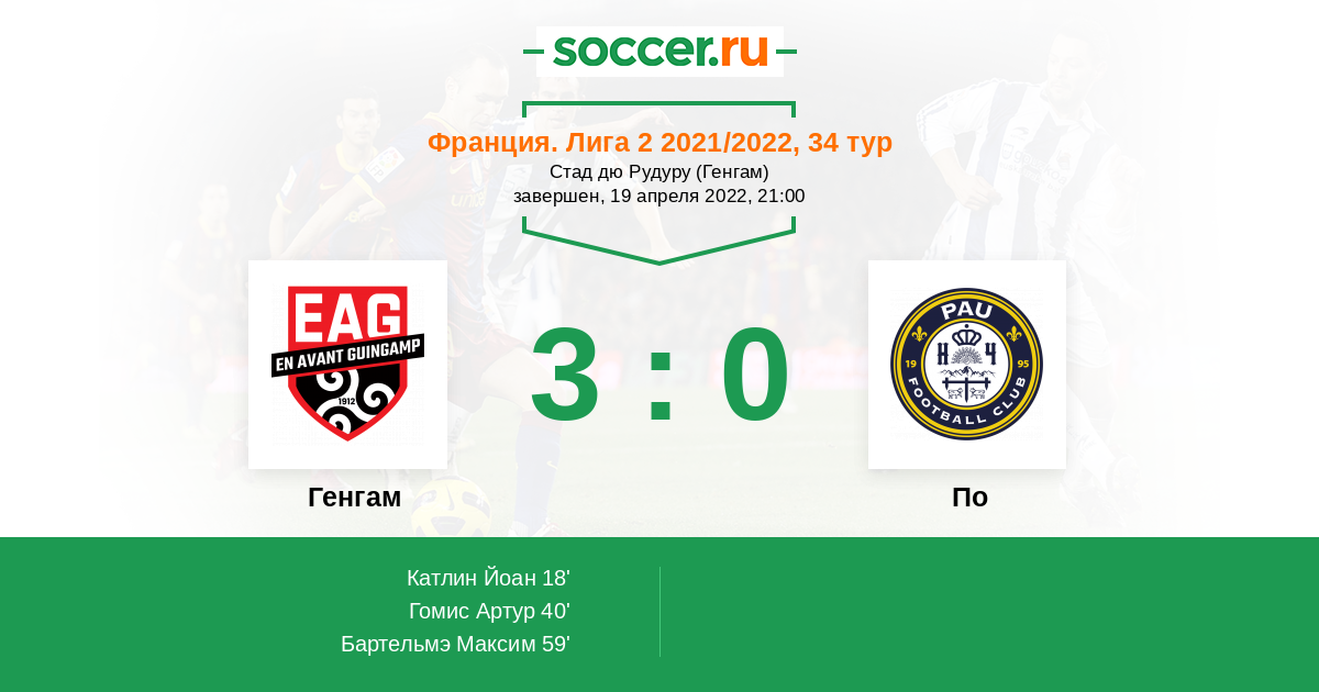 Протокол матча Генгам против По