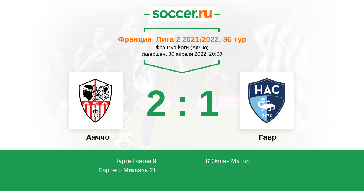 Протокол матча Аяччо против Гавр