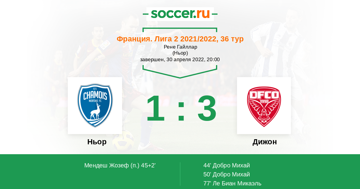 Протокол матча Ньор против Дижон
