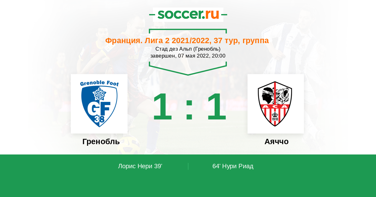 Протокол матча Гренобль против Аяччо