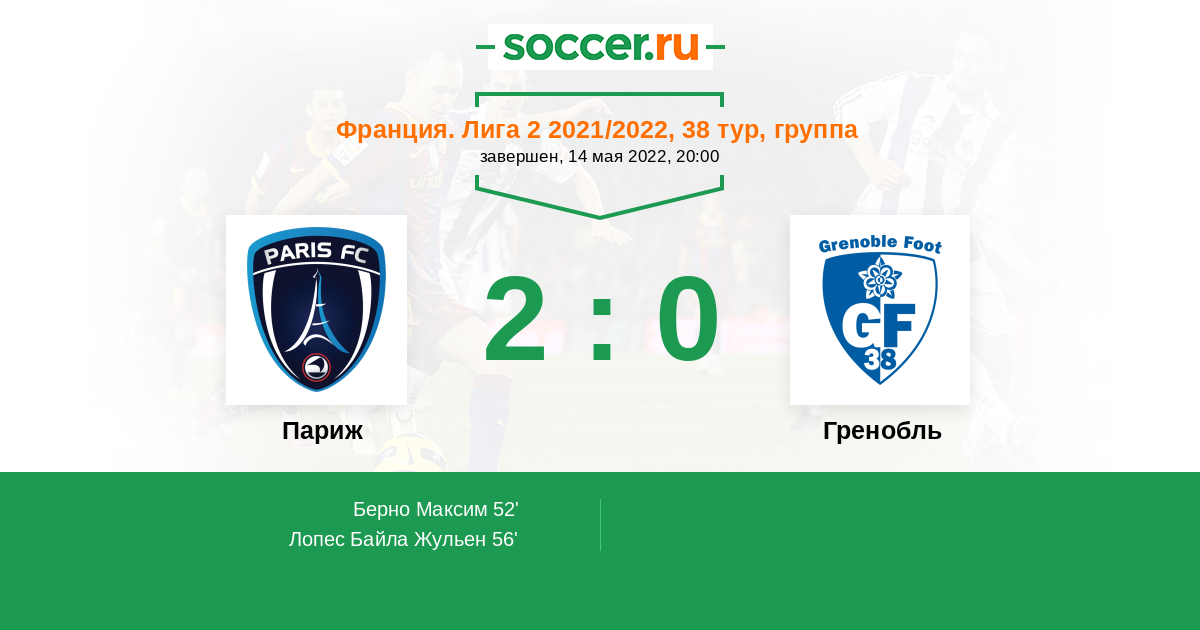 Протокол матча Париж против Гренобль