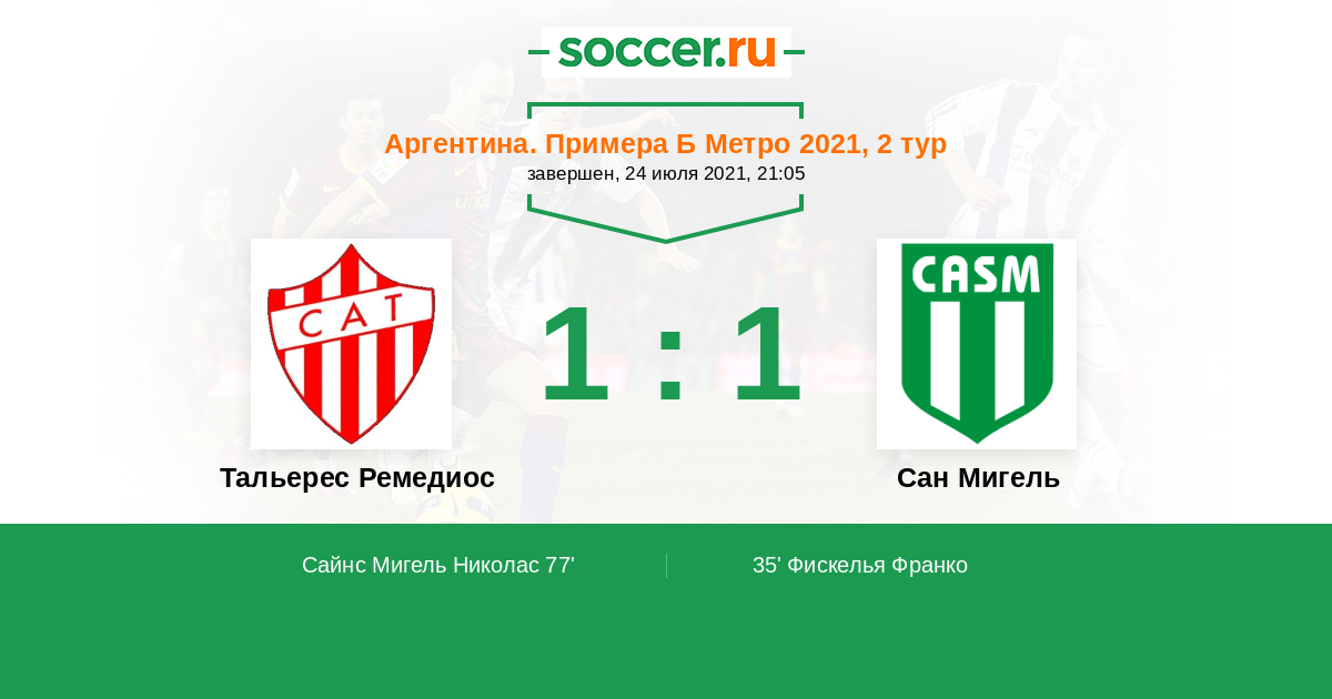 Протокол матча Тальерес Ремедиос против Сан Мигель